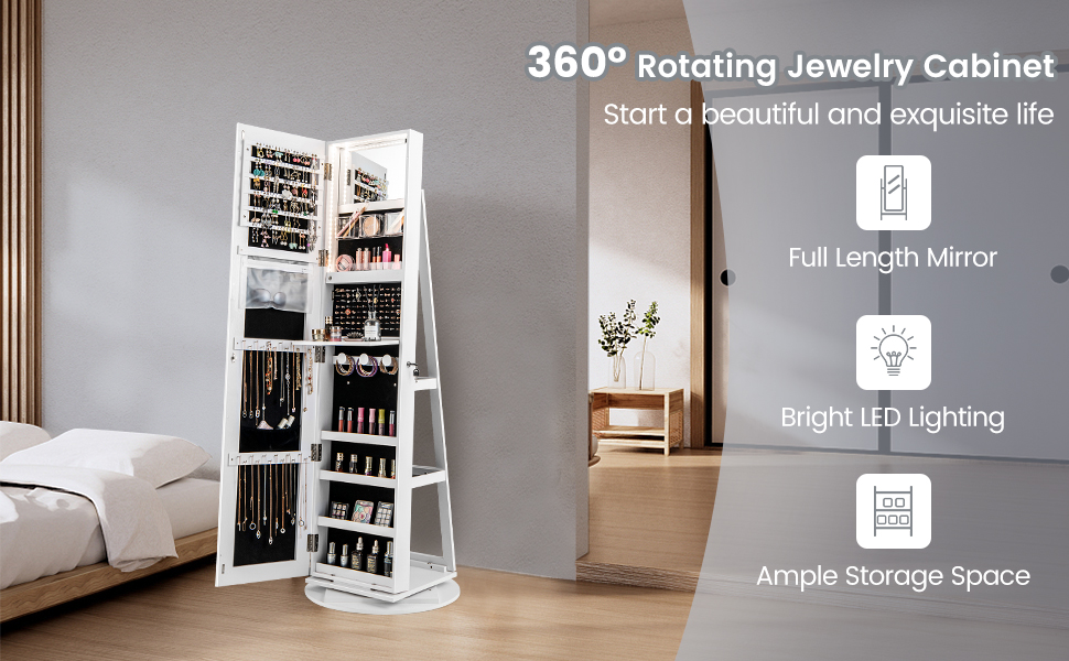 Ellegnt 161CM 360° Swivel Jewellery Armoire with Mirror/ Jewelry Armoire