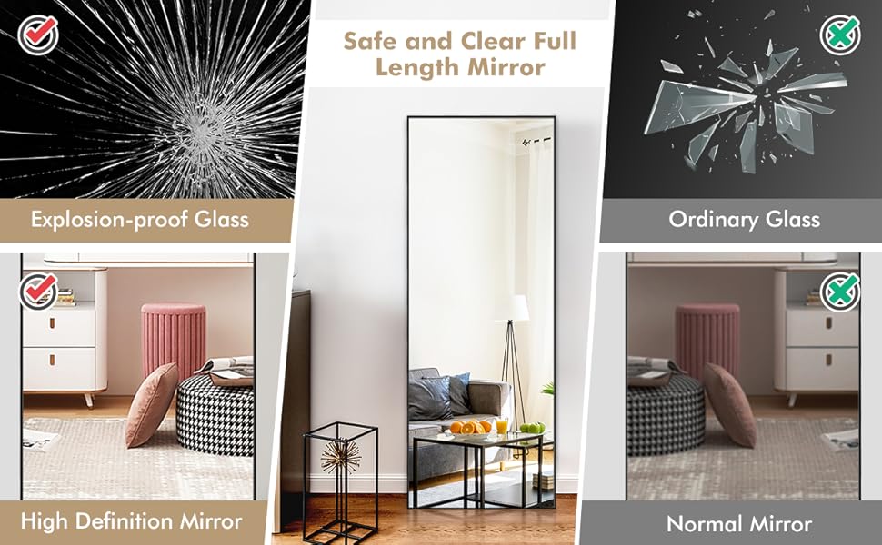 Explosion-Proof Glass: Designed with safety in mind, this freestanding mirror features explosion-proof glass, which is stronger and more secure than ordinary alternatives. In the unlikely event of breakage due to external force, the glass will not shatter, ensuring enhanced protection for you and your family.