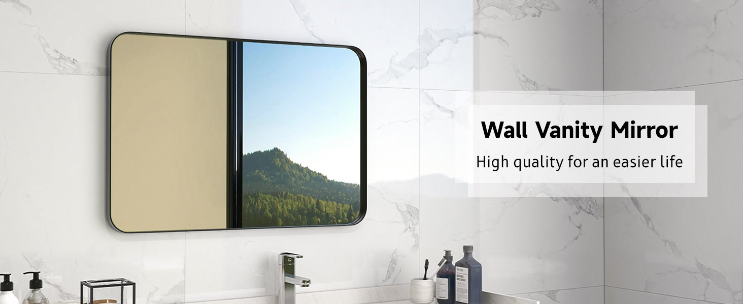 Elegant Appearance: With a thick aluminium alloy frame, this rounded rectangular wall mirror complements a variety of interiors. Whether placed in the bathroom, bedroom, or living room, it adds a refined touch and allows you to admire your reflection wherever it’s situated.