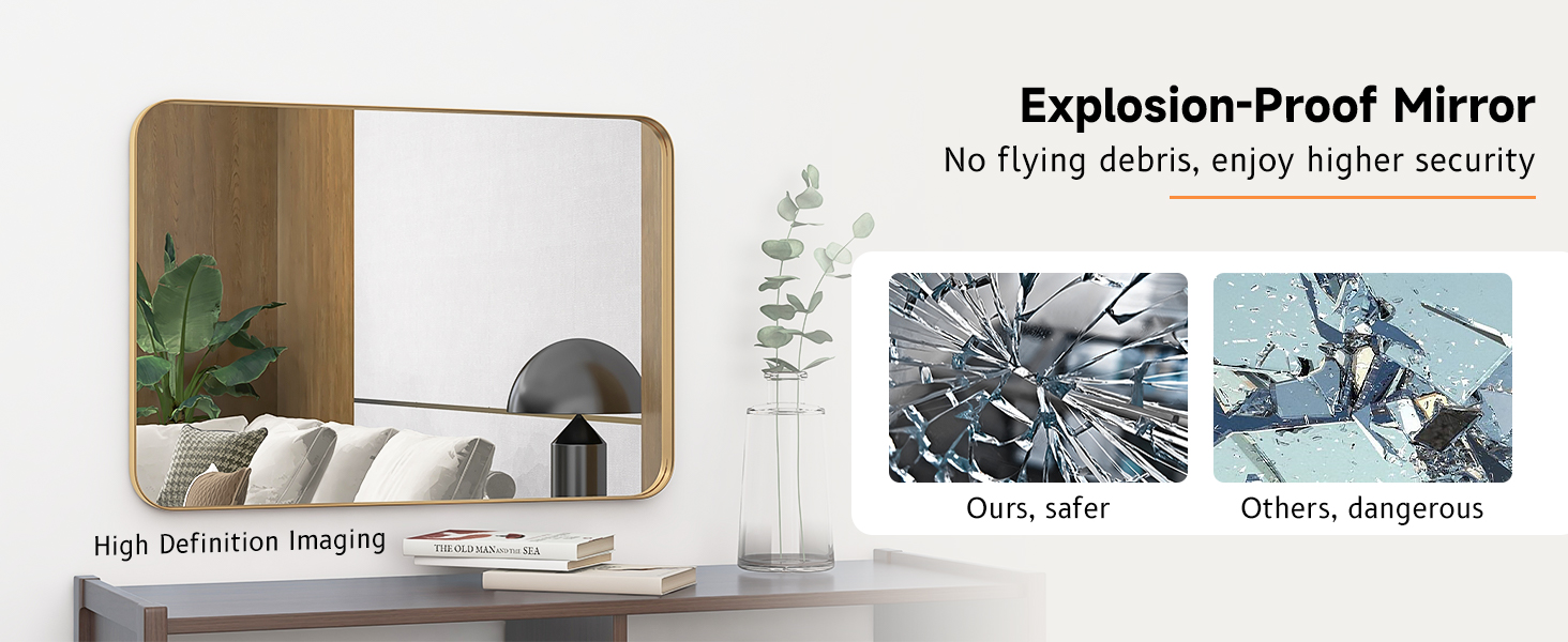 Safe Bathroom Mirror: The mirror features rounded corners to prevent injury during use. More importantly, the glass is shatterproof, meaning that in the event of accidental breakage, it will not scatter shards—providing added safety and peace of mind.